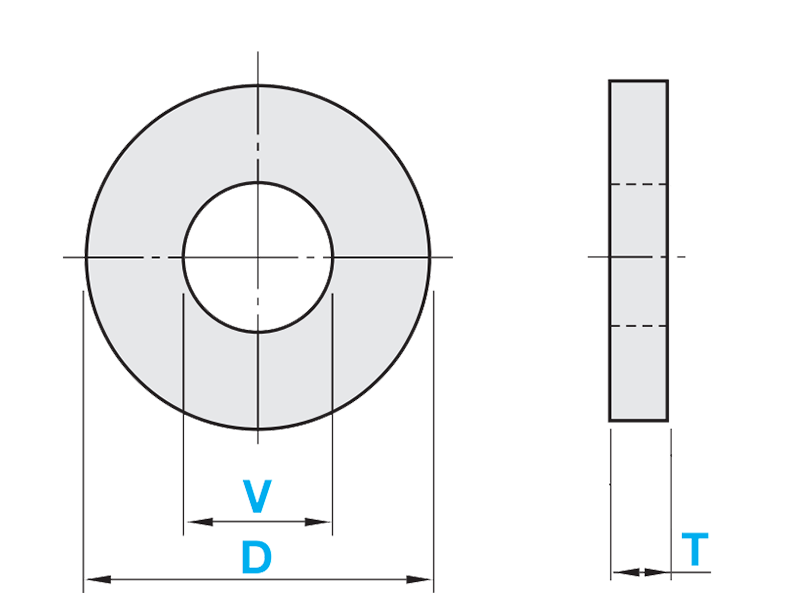 - DIN 125 / ISO 7089: Rondelle standardizzate per applicazioni generiche utilizzate come rondelle per connessioni filettate.