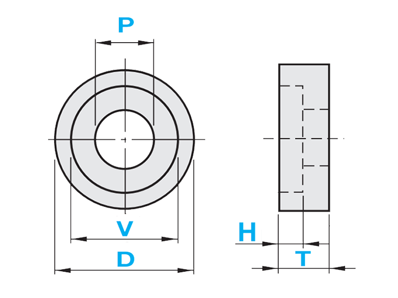 Classe di precisione | Dimensione T: ±0.01 mm | Dimensione T: ±0.01 mm Dimensione H: ±0.1 mm Dimensione V: 0.3 mm/0.1 mm Dimensione D: 0/-0.2 mm Dimensione P: 0.3 mm/0.1 mm |