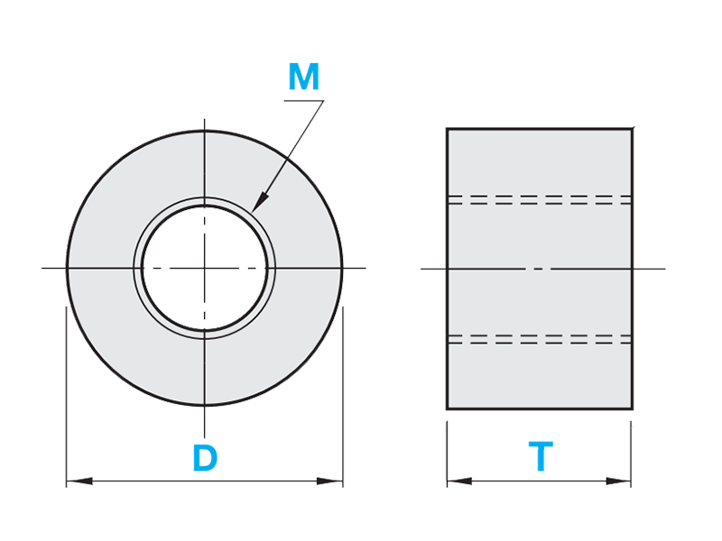 MISUMI dispone di dischi e manicotti temprati e non temprati. La durezza influisce sull’usura: più duro è il materiale, più resistenti saranno i manicotti e le rondelle alla deformazione e all’usura. La scelta del materiale ha anche un’influenza: i manicotti distanziatori in acciaio inox e i dischi distanziatori in acciaio inossidabile sono adatti per ambienti corrosivi. MISUMI può configurare anche dischi distanziatori e manicotti distanziatori in plastica, ceramica, gomma, feltro o materiali per l’isolamento termico per condizioni ambientali speciali. L’uso di gomma e feltro è vantaggioso, per esempio, per applicazioni che richiedono l’assorbimento delle vibrazioni o proprietà antistatiche.