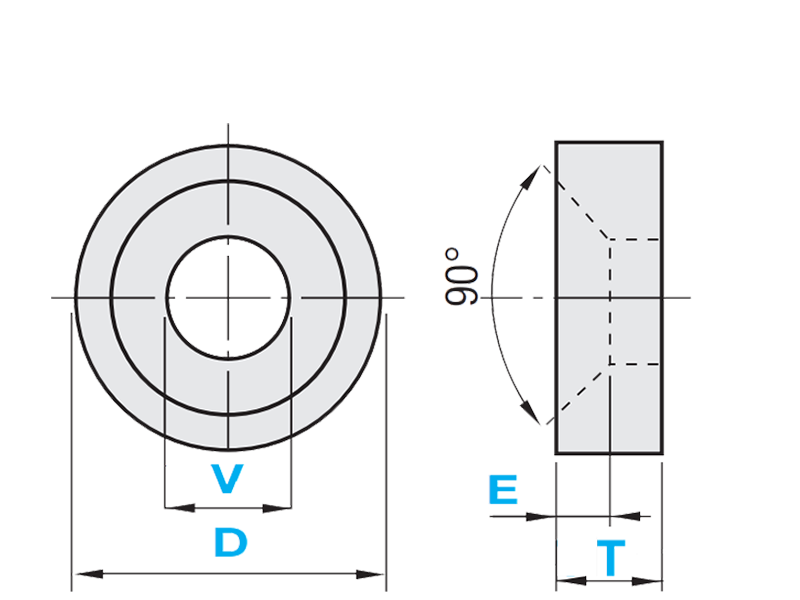 Classe di precisione | Dimensione T: ±0.01 mm | Dimensione V: 0.3 mm/0.1 mm Dimensione D: 0/-0.2 mm |