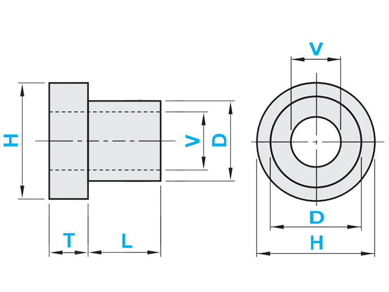 MISUMI consente di configurare il manicotto con collare a forma di flangia. L’altezza del collare è specificata con le tolleranze e può essere utilizzata per requisiti di distanza precisi.