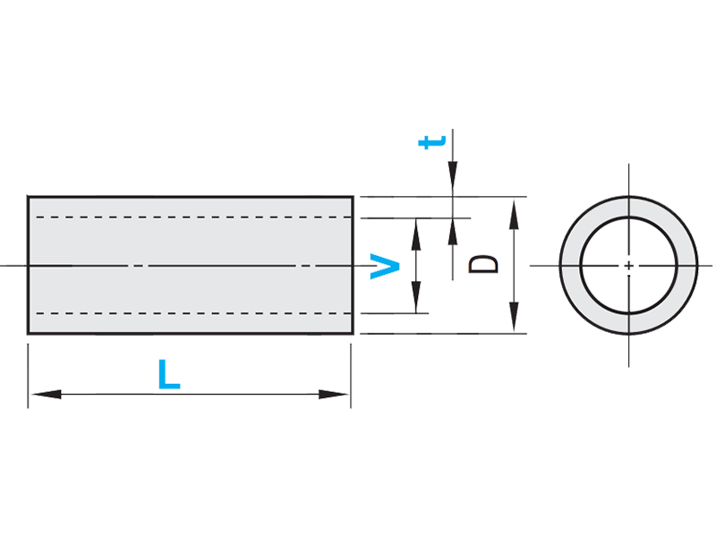 | Manicotto in metallo a parete sottile | - Dimensione L configurabile (in incrementi di 0.5 mm) - Dimensioni V e T selezionabili |