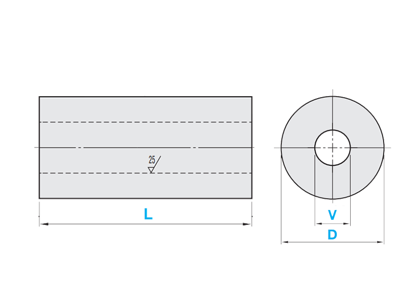 10, 12, 15, 20, 25, 30, 35 mm | Classe standard | Dimensione L: 0/-0.1 mm | Dimensione V: 0.3 mm/0.1 mm Dimensione D: 0/-0.2 mm |