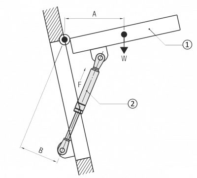 Per i portelli la forza di rilascio richiesta della molla di compressione a gas può essere calcolata, per esempio, come segue: