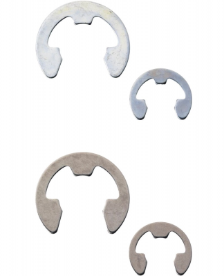 Anelli di sicurezza, rondelle di bloccaggio e anelli a scatto sono utilizzati per fissare alberi o fori. Questi meccanismi di bloccaggio sono più robusti a velocità di rotazione e hanno superfici di cuscinetti più grandi. Questi elementi di bloccaggio possono quindi essere utilizzati anche a carichi assiali più elevati. Gli anelli di sicurezza e gli anelli a scatto possono essere utilizzati come elementi di bloccaggio assiali dall’interno nei fori.